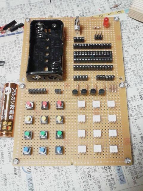 最終的に何か形あるものを作るのなら、初めからそれに近い状態の環境を用意していろいろ試していったほうが飲み込みやすいだろう…そう思いまして、テスト環境を作ることにしました。秋葉原でパーツを買い込んで、慣れないハンダ付けをコツコツ進めて、ダラダラと4日くらいかかって やっと組み立てました。