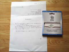 「商品不備のお詫び」というメッセージとともに新品のパワーバランスが届けられました。13日に返信用の封筒を出して、19日に届いたので、「2~3週間かかるかもしれない」と断りがあった割りに とても迅速に対応していただきました。