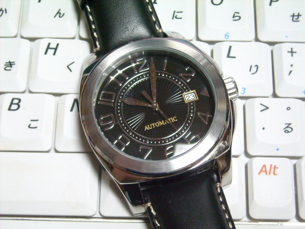 文字盤とバンドの色を選べるということで、どちらも黒にしてもらいました。振られることでぜんまいの巻上げが行われる自動巻きと、リューズをまわして巻き上げる手巻きの両方が付いてます。