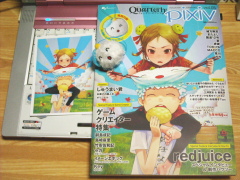 pixivの本は、redjuiceさんとProject DIVAのインタビューが掲載されているというので、買ってみました。特別付録には「しゅうまい君」というキャラのストラップ。しゅうまい君って知りませんでしたが、ツイッターのキャラらしいですね。この表紙のイラストは、前にUSTREAMで配信していたのを見た記憶がある。本当にしるさんのイラストは素敵だわぁ。やる気があれば、まったく違う道を目指すことも・・・?