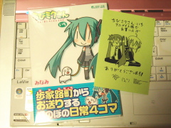 ということで、2冊目を買ってきました。書店購入特典として、各ショップごとに異なるメッセージペーパーが付いてくるのですが、ミクねーさんが描かれているものはアニメイトのみ。なので、アニメイトで買ってきました。SHIBUYA TSUTAYAだったら、特製コースターをもらうこともできましたが。