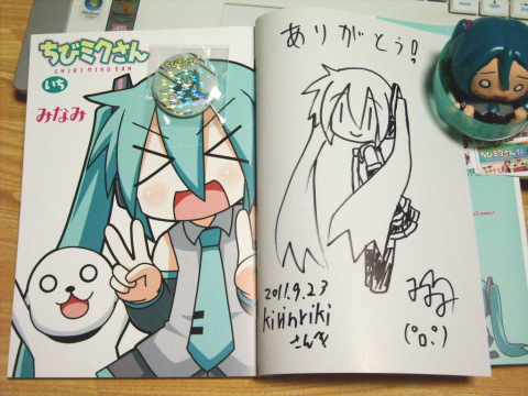 ちびミクさんやリンなど、13人の中から1人選んで書いてもらえるようになっていました。自分ははつねミクをリクエスト。やった!ミクねーさんだ!