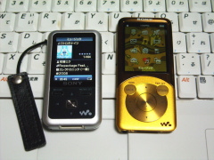 今まで使ってきたNW-S616Fのシルバーと並べて分かること。縦に大きくなったけど、厚さは半分ほどに。イヤホンの差込口とストラップの取り付け穴が下に移動。ホールドスイッチが右側に移動。本体はアルミ系の素材で作られているのかな。・・・といったところでしょうか。
