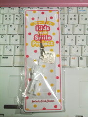 カーネルおじさんのストラップが付いたフリフリポテトも注文しました。通常のフリフリポテトに+10円するだけでこのストラップが付いてきます。その10円は「カーネルKids with Smile Project」の活動で、東日本大震災の被害地の子供たちのために使われるとのこと。
