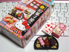 父親が食玩、ガチャポン好きで、その血を引いているのかもしれません。ただ、動物系が好きなのに対して、自分は食べ物系を見るとワクワクしちゃいます。そして和モノでドキドキしちゃいます。よって、和菓子はド直球ストレートwktkなのです♪ このキティちゃんの和菓子、できればコンプしてショーケースに入れて飾りたいなぁ。