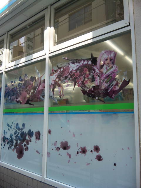 まわった順番は、「三崎町三丁目店」→「水道橋駅西口店」→「三崎神社通り店」→「水道橋駅東口店」。歩いて5分くらいの間隔。それぞれ窓ガラスのプリントが異なっていて、「水道橋駅西口店」のデザインが1番好きかも。DIVAの雪ミクさんと桜ミクさんのデザインで、入り口には等身大の桜ミクさん。ここの桜ミクステッカーが欲しかったんだけどなぁ。8,9日って平日だし、先着1000名までに行くのは無理だし。