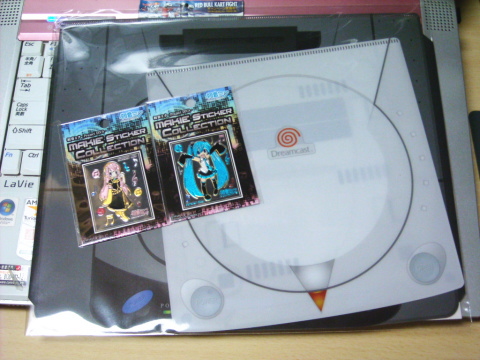 物販コーナーはそんなに混み合っていなくて、行けばすぐに購入できる様子でした。ということで、余裕でルカさんの蒔絵シールをゲット! そのほかに、ミクさんの蒔絵シールと、「実物大セガハード クリアファイル3台セット」を買いました。