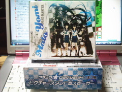 話を戻して、このスピーカー、単4電池4本を使います。なので、まだ実際に試していません。音量を大きくするために必要なんですね。あと、音量調整はオーディオ機器側で行ってください、とのことです。まぁ、その、キャラクターグッズということで・・・。イラストはhukeさんの書下ろしですか?とてもいいです♪