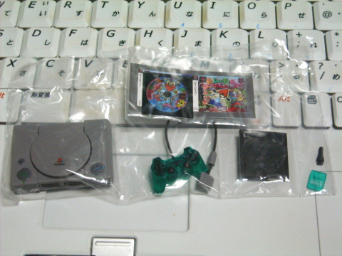 そのビルの中でガチャポンがずらっと並んでまして、プレイステーションのガチャポンを発見。「プレイステーション ヒストリーコレクション1」というガチャポンで、300円。でも高いだけあって、なかなかの出来です。