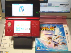 セットになっているニンテンドー3DS専用スタンドがとても便利。てかこれがないとパルテナをプレイするのはキツいよね。すばらしい安定感だ。ゲームによっては他でも大活躍しそうです。例えば、Project miraiでマイルームとかPVを見るのにちょうどいい角度。スタンドを使ったまま、ARカードをスキャンさせるのは難しかったけど。てか、今さらでごめんなさいですが、ARカードってすごいね。QRコードみたいな分かりやすいマーク的なものがまったくないのに、何かを認識してキャラクターが飛び出してくるんだもの。なぜかミクさんのカードでMEIKOが出てくるという、謎のバグが発生しているけど・・・