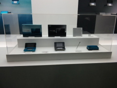 本体展示コーナーに展示されていたのは「アクアブルー」「コスモブラック」のニンテンドー3DS。この2色が2/26に発売予定となっています。E3ではレッドが出展されてましたよね。「レッドがいい!」と思っていたので、ちょっと残念、というか じゃあどっちの色にするか。