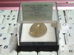 「ルチル・クォーツ(針入水晶)」という名前の通り、中に 金色の帯のようなものが模様になっていて、とてもきれいです。googleで検索してみたら、パワーストーンとして有名な石のようです。主に金運が強いらしい。